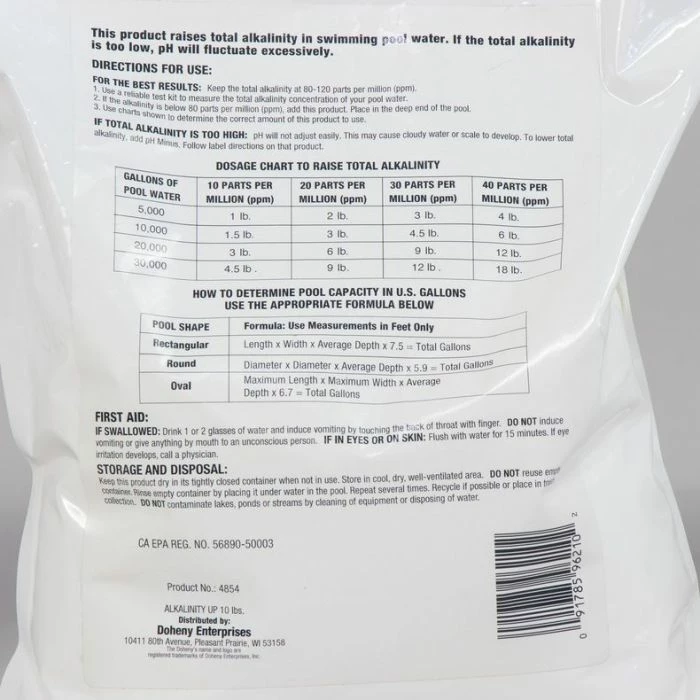 Raises alkalinity levels to protect pool surfaces and helps maintain pH balance. Saves you money on chemicals! Protects against etching of surfaces and eye irritation.
