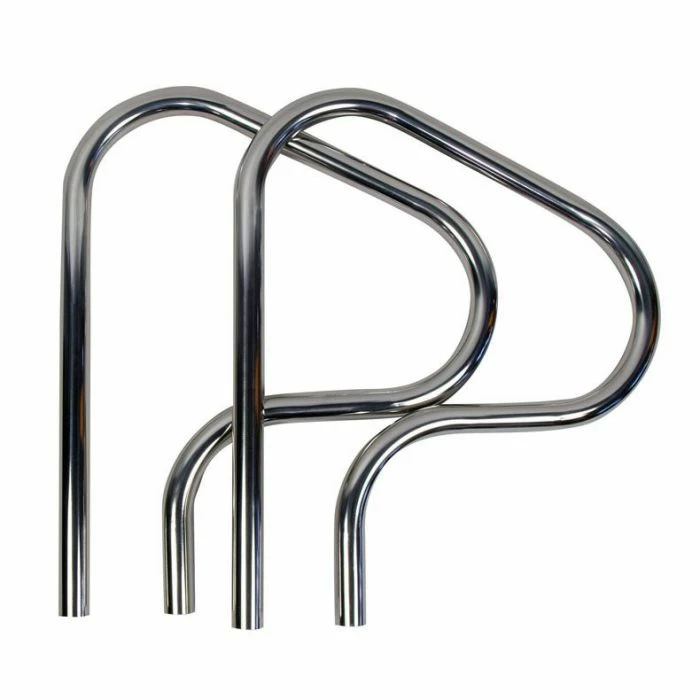 Handrails are made of 1.90″ O.D 304 stainless steel tube with mirror finish. All bends are 6″ radius. Not recommended for indoor pools or pools using a salt sanitation system.