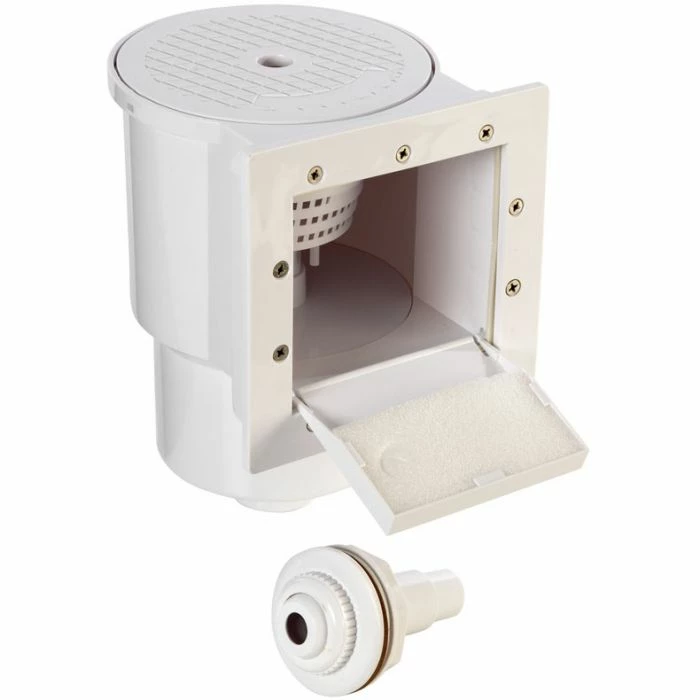 The opening of the wide mouth skimmer is 5-3/8 x 11-3/4″ and has an 18 hole face plate.