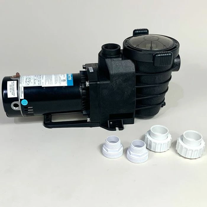 Harris’s ProForce Silencer Pump is a self-priming, heavy-duty inground pump and delivers outstanding performance and reliability at a fantastic price. Costs less than big name brands. Designed and manufactured to meet all CSA and ETL requirements. See-through strainer cover allows you to see when the basket needs to be cleaned and eliminates guesswork. Its heavy-duty construction and advanced engineering provide high efficiency and minimized noise. A special self-adjusting seal ensures dependable sealing. The industrial-size ceramic seal is heat-resistant, long-wearing and drip proof. The service-ease design allows simple access to all internal parts. Convenient drain plug makes winter maintenance easy. The corrosion-proof, Stainless Steel motor shaft is constructed with a reinforced thermoplastic body for extra durability and long life. 1 HP and 1.5 HP are prewired for 115/230 volts. Mounting base provides stable, stress-free support, plus versatility for any installation requirement. Adaptable for 48 and 56 frame motors.