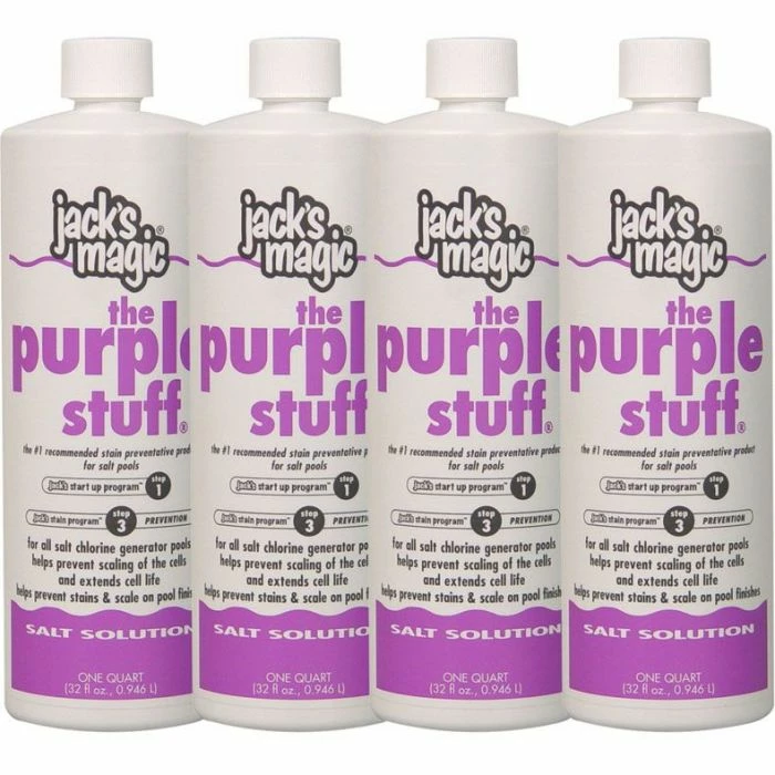 Keep your pool chlorine generator working at its fullest potential with Jack’s Magic The Purple Stuff. Your saltwater pool will love it!