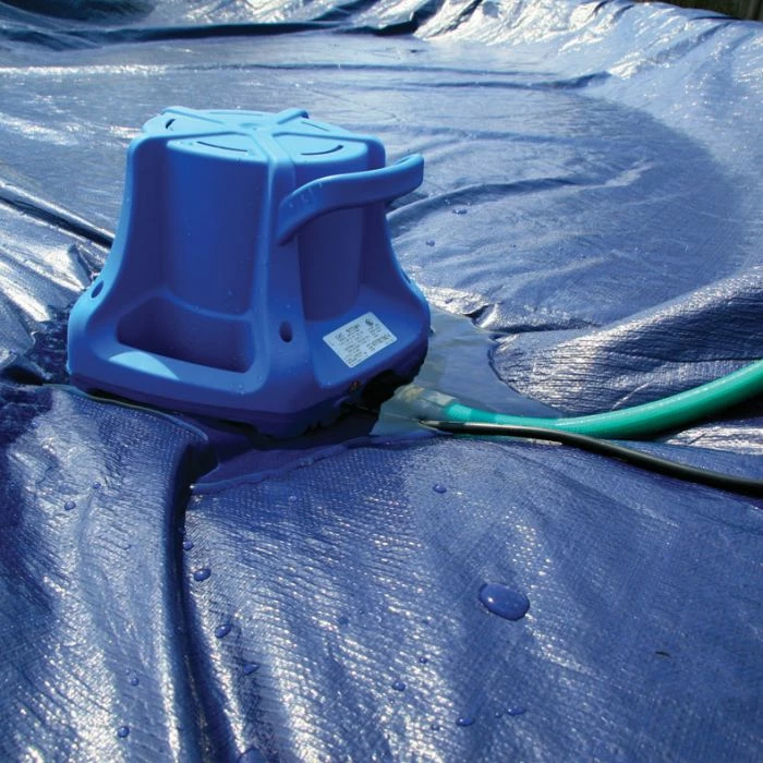 Remove standing water from your winter pool cover with this submersible Deluxe Pool Cover Pump. Why hire an expensive pool care company when you can save money and let a pump do the job for you? This heavy duty pool cover pump can remove up to 1700 gallons of water per hour (GPH), and is completely submersible. It also turns on automatically in as little as 2 inches of water, continually clearing water from your pool cover as needed. Durably constructed, with a convenient integrated handle.
