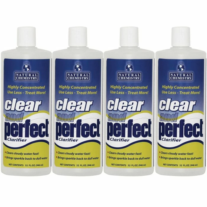Natural Chemistry’s Clear & Perfect is the ultimate 6-in-1 clarifier and gives your pool unsurpassed superior water clarity! It contains specialized polymers that turn small particles into larger compact groups that can be trapped by the filter or drop to the bottom of the pool. Dosage: 1 oz/6,000 gal.