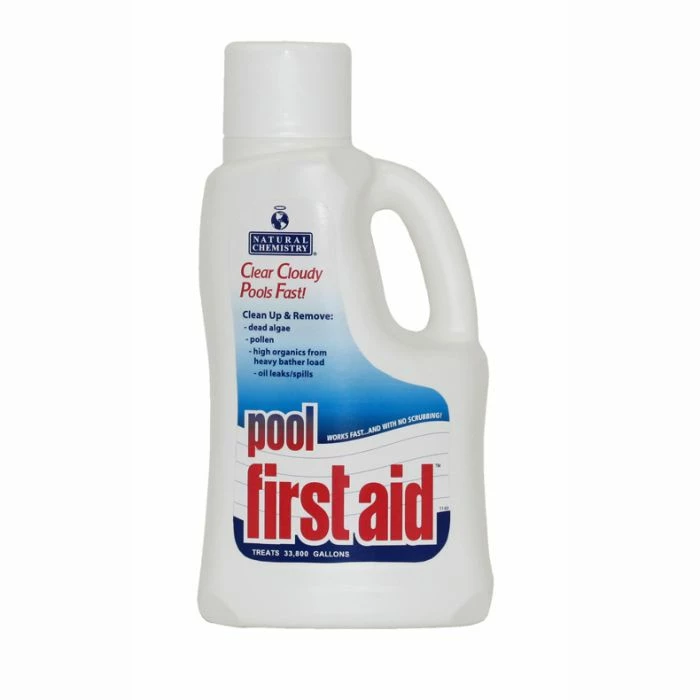 Rids pools of scum build-up, waterline ring, cloudy water, clogging filters, and chemical odors with absolutely no scrubbing. It also includes electrolyte polymer clarifier for quicker results. Pool First Aid will quickly free clogged filters of oils and organic build-up. No other product will remove dead algae more quickly and efficiently. In most cases, no back washing is required.