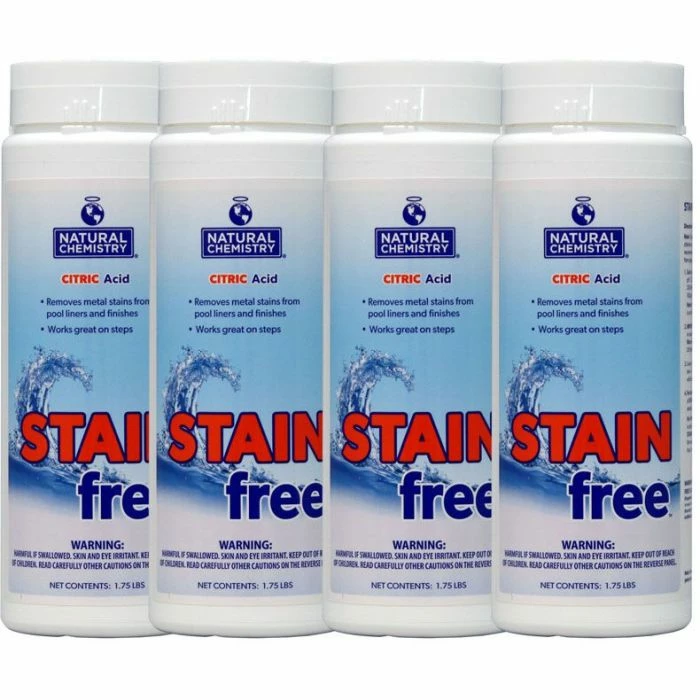Natural Chemistry Stain Free is an all-natural way to eliminate staining to pool liners and finishes. Stain Free is a citric acid product that is ideal for treating staining on all pool surfaces and is compatible with all sanitizing systems.